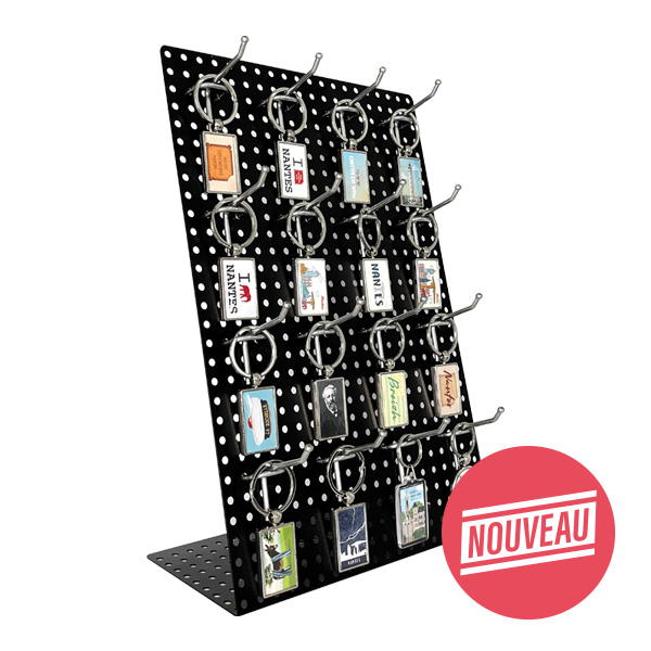 Augmentez la visibilité de vos porte-clés et boostez vos ventes avec notre présentoir de comptoir en tôle micro-perforée.